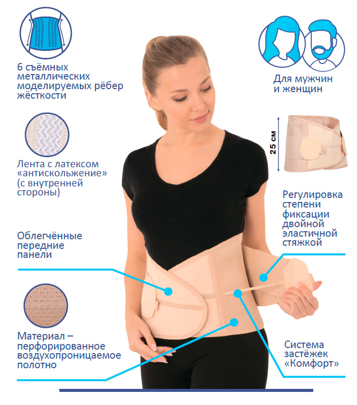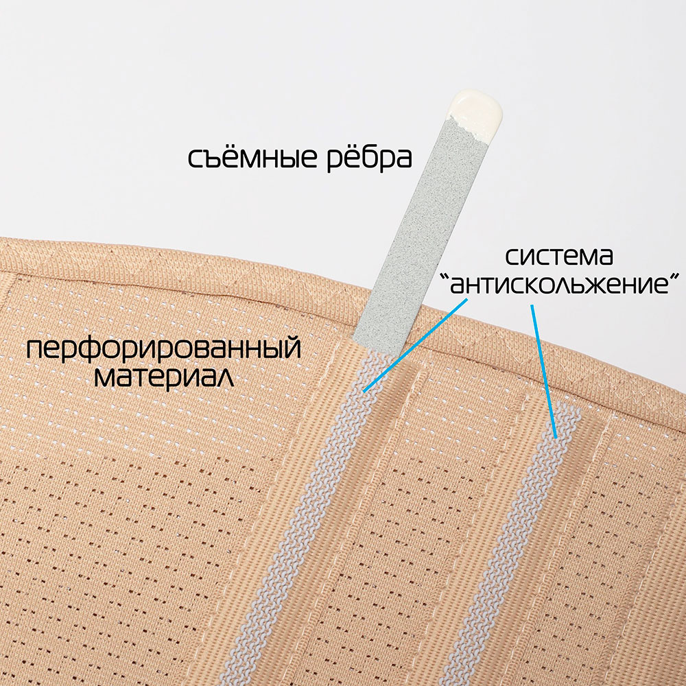 • Снабжен дополнительной двойной стяжкой для максимального воздействия на пояснично-крестцовый отдел позвоночника