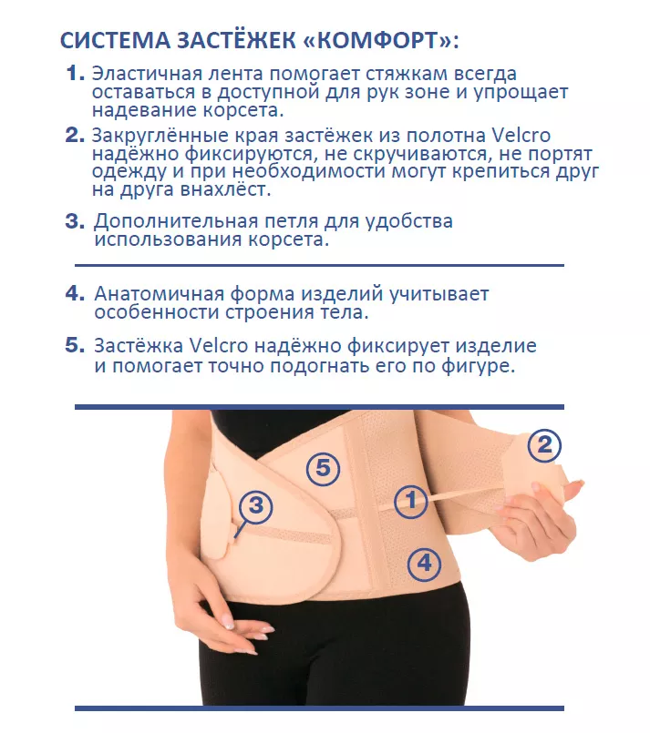 • Зафиксировать застежку корсета на животе